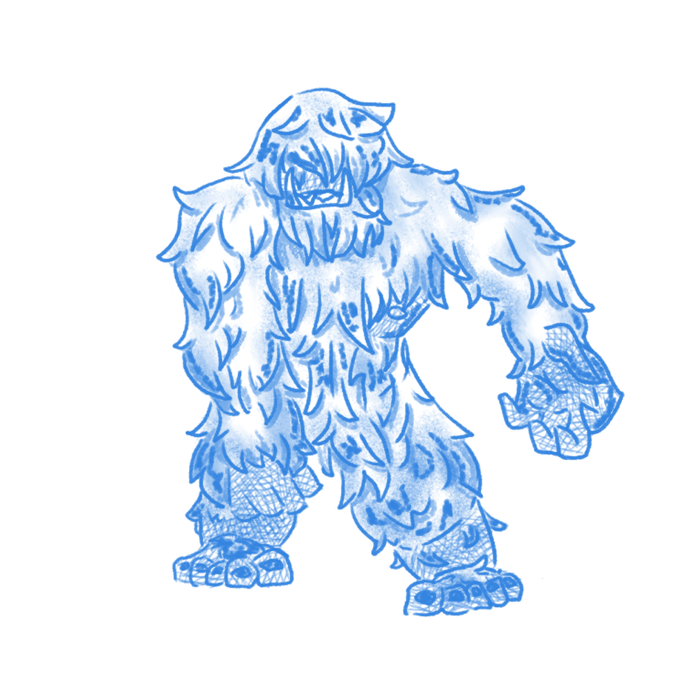 Physical Description: Can blend itself into the background, covered with a yellowish-white fur. The height of an average man, but bulkier and covered in coarse white fur, allowing it to blend into its natural habitat of snow. It is a carnivore that preys on animals and, sometimes, people. The head of an Icora has been compared to that of a seal, but with long, sharp teeth.